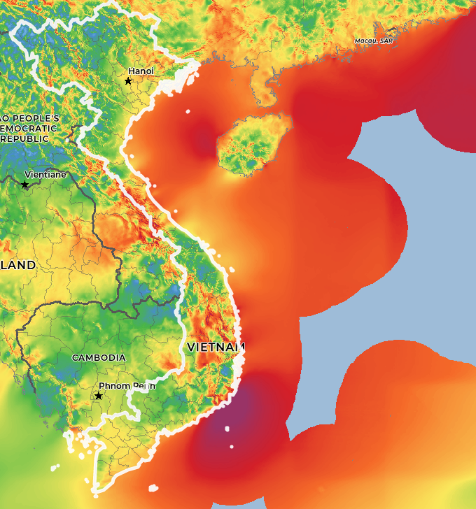 Dựa vào hình 1, số giờ nắng trong khu vực miền Bắc vào khoảng 1500-1700 giờ mỗi năm với lượng bức xạ trung bình khoảng 4 kW/h/m2 và khu vực miền Nam khoảng 2000-2600 giờ nắng mỗi năm với lượng bức xạ trung bình khoảng 5 kW/h/m2. Đây là điều kiện tuyệt vời để phát triển ngành năng lượng tái tạo đặc biệt là nguồn năng lượng vô tận như năng lượng mặt trời.